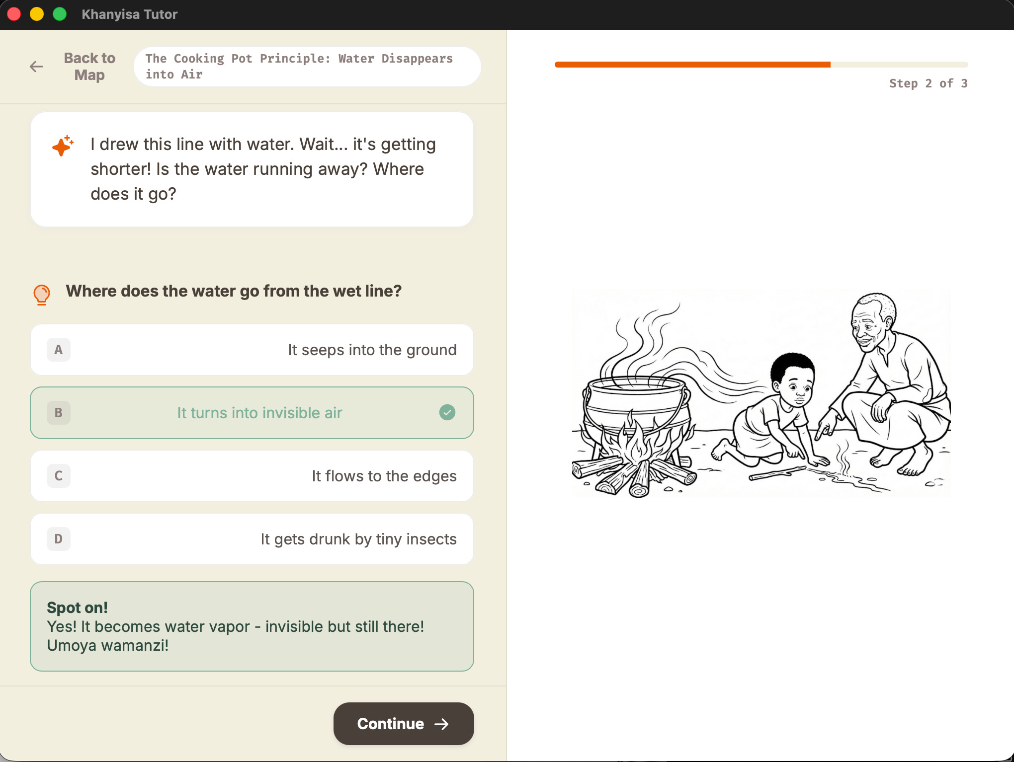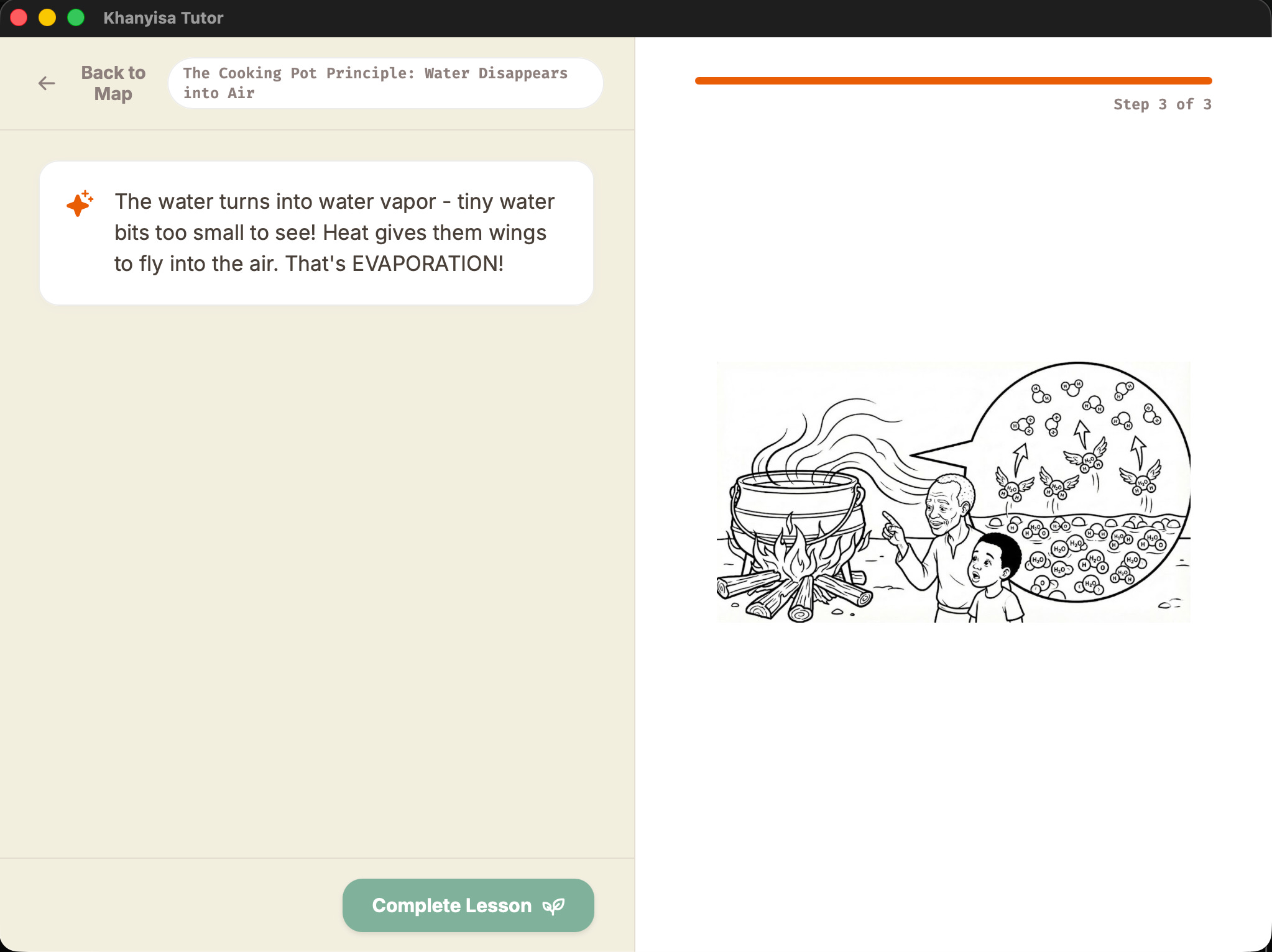 We use the “Cooking Pot” Principle. instead of explaining evaporation with abstract diagrams, we start with the village fire.